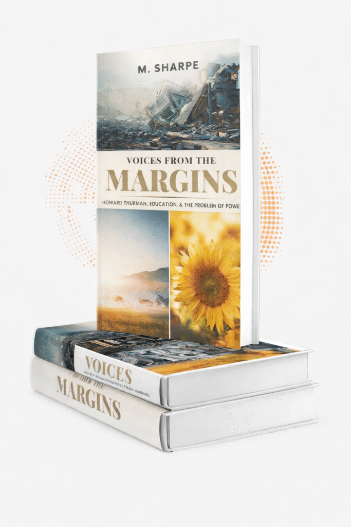 Voices from the Margins is a compelling exploration of Howard Thurman’s vision of justice, compassion, and the emancipated human spirit. Blending biography, philosophy, and moral reflection, M. Sharpe examines how power operates quietly and structurally in the lives of the marginalized—particularly through education and racialized systems. Rooted in Thurman’s insights on the disinherited, the book connects past and present to reveal enduring patterns of exclusion, while offering a resonant call to awareness, resilience, and reclaimed voice.